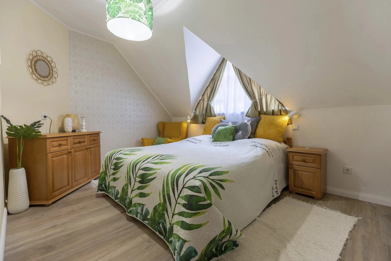 Apartamentul Trópusi 5 este alegerea ideală pentru două cupluri, patru prietene sau familii care doresc o ședere confortabilă, într-un spațiu generos și complet echipat. Apartamentul se află la etaj, pe partea stângă a scării interioare, și are o suprafață de 80 m².